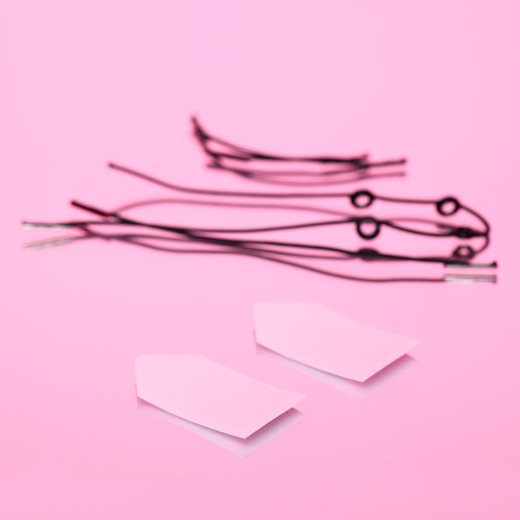 Step 7: Once you are comfortable with the positioning, remove the protective film from the strips (one by one) without touching the adhesive, apply them to perfectly clean and DEGREASED skin, in front of the ears. Press firmly and rub with your fingers for 30 seconds to adhere properly.
